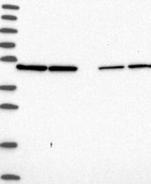 A Western blot analysis is performed on a panel of human tissues and cell lines to evaluate antibody specificity. For antibodies with unreliable result a revalidation using an over-expression lysate is performed.