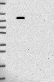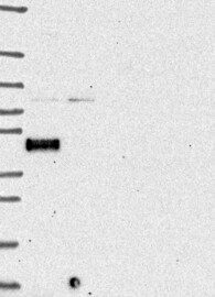 A Western blot analysis is performed on a panel of human tissues and cell lines to evaluate antibody specificity. For antibodies with unreliable result a revalidation using an over-expression lysate is performed.