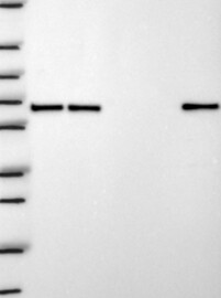 A Western blot analysis is performed on a panel of human tissues and cell lines to evaluate antibody specificity. For antibodies with unreliable result a revalidation using an over-expression lysate is performed.