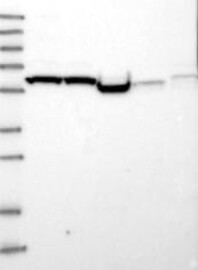 A Western blot analysis is performed on a panel of human tissues and cell lines to evaluate antibody specificity. For antibodies with unreliable result a revalidation using an over-expression lysate is performed.
