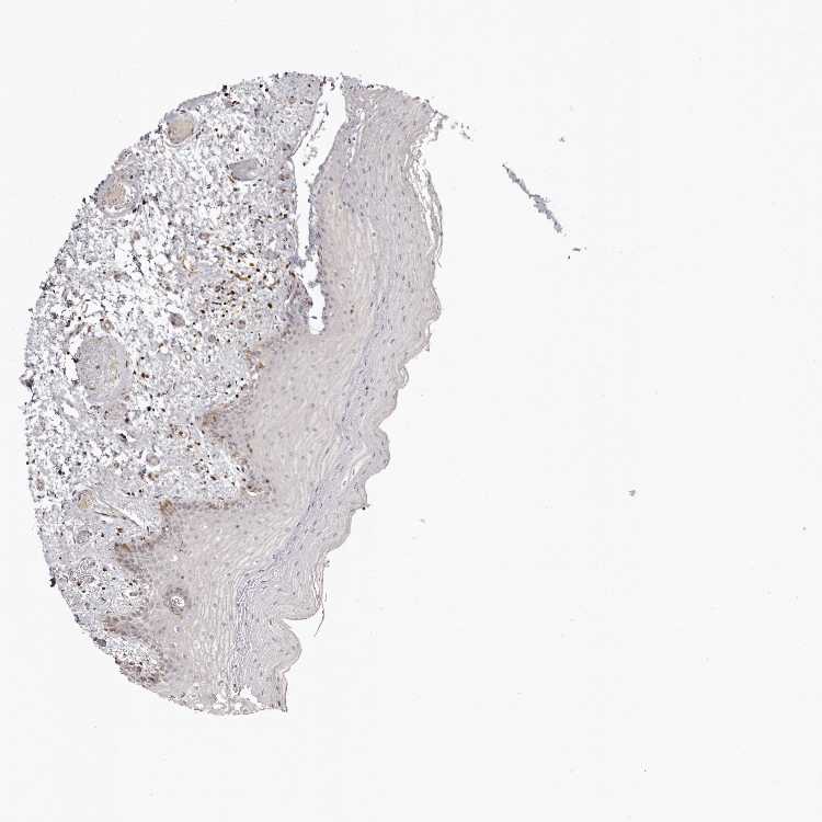 Antibody staining in the annotated cell types in the current human tissue is reported as not detected, low, medium, or high, based on conventional immunohistochemistry profiling in selected tissues. This score is based on the combination of the staining intensity and fraction of stained cells.
