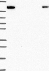 A Western blot analysis is performed on a panel of human tissues and cell lines to evaluate antibody specificity. For antibodies with unreliable result a revalidation using an over-expression lysate is performed.