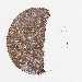 Antibody staining in the annotated cell types in the current human tissue is reported as not detected, low, medium, or high, based on conventional immunohistochemistry profiling in selected tissues. This score is based on the combination of the staining intensity and fraction of stained cells.
