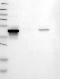 A Western blot analysis is performed on a panel of human tissues and cell lines to evaluate antibody specificity. For antibodies with unreliable result a revalidation using an over-expression lysate is performed.