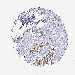 Antibody staining in the annotated cell types in the current human tissue is reported as not detected, low, medium, or high, based on conventional immunohistochemistry profiling in selected tissues. This score is based on the combination of the staining intensity and fraction of stained cells.