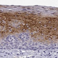 Enhanced validation results in the score Enhanced and includes two methods: Orthogonal validation and Independent antibody validation. For orthogonal validation, representative images of high and low expression are shown. For independent antibody validation, four images of each independent antibody are displayed.