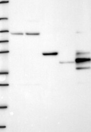 A Western blot analysis is performed on a panel of human tissues and cell lines to evaluate antibody specificity. For antibodies with unreliable result a revalidation using an over-expression lysate is performed.