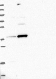 A Western blot analysis is performed on a panel of human tissues and cell lines to evaluate antibody specificity. For antibodies with unreliable result a revalidation using an over-expression lysate is performed.