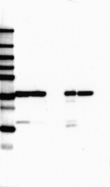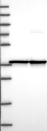 A Western blot analysis is performed on a panel of human tissues and cell lines to evaluate antibody specificity. For antibodies with unreliable result a revalidation using an over-expression lysate is performed.