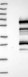 A Western blot analysis is performed on a panel of human tissues and cell lines to evaluate antibody specificity. For antibodies with unreliable result a revalidation using an over-expression lysate is performed.