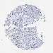 Antibody staining in the annotated cell types in the current human tissue is reported as not detected, low, medium, or high, based on conventional immunohistochemistry profiling in selected tissues. This score is based on the combination of the staining intensity and fraction of stained cells.