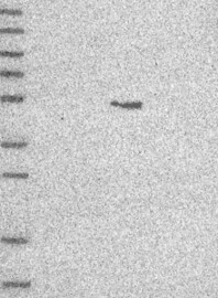 A Western blot analysis is performed on a panel of human tissues and cell lines to evaluate antibody specificity. For antibodies with unreliable result a revalidation using an over-expression lysate is performed.