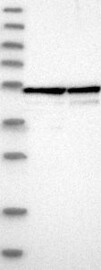 A Western blot analysis is performed on a panel of human tissues and cell lines to evaluate antibody specificity. For antibodies with unreliable result a revalidation using an over-expression lysate is performed.