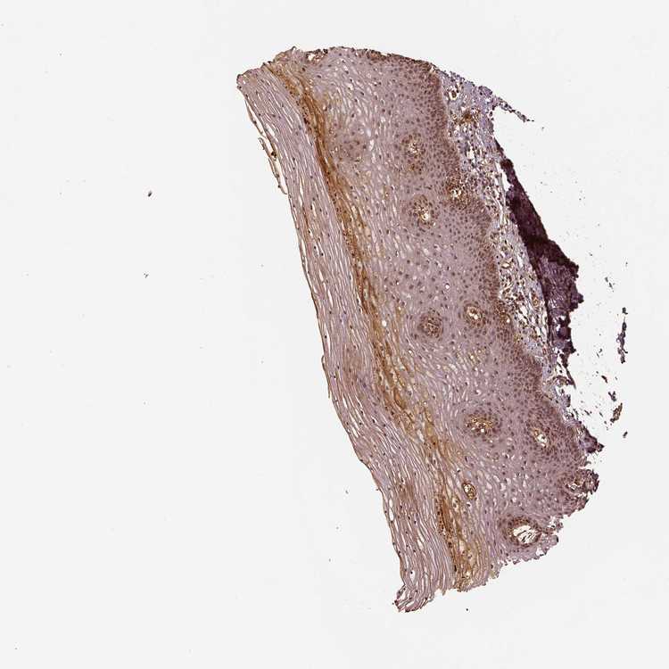 Antibody staining in the annotated cell types in the current human tissue is reported as not detected, low, medium, or high, based on conventional immunohistochemistry profiling in selected tissues. This score is based on the combination of the staining intensity and fraction of stained cells.