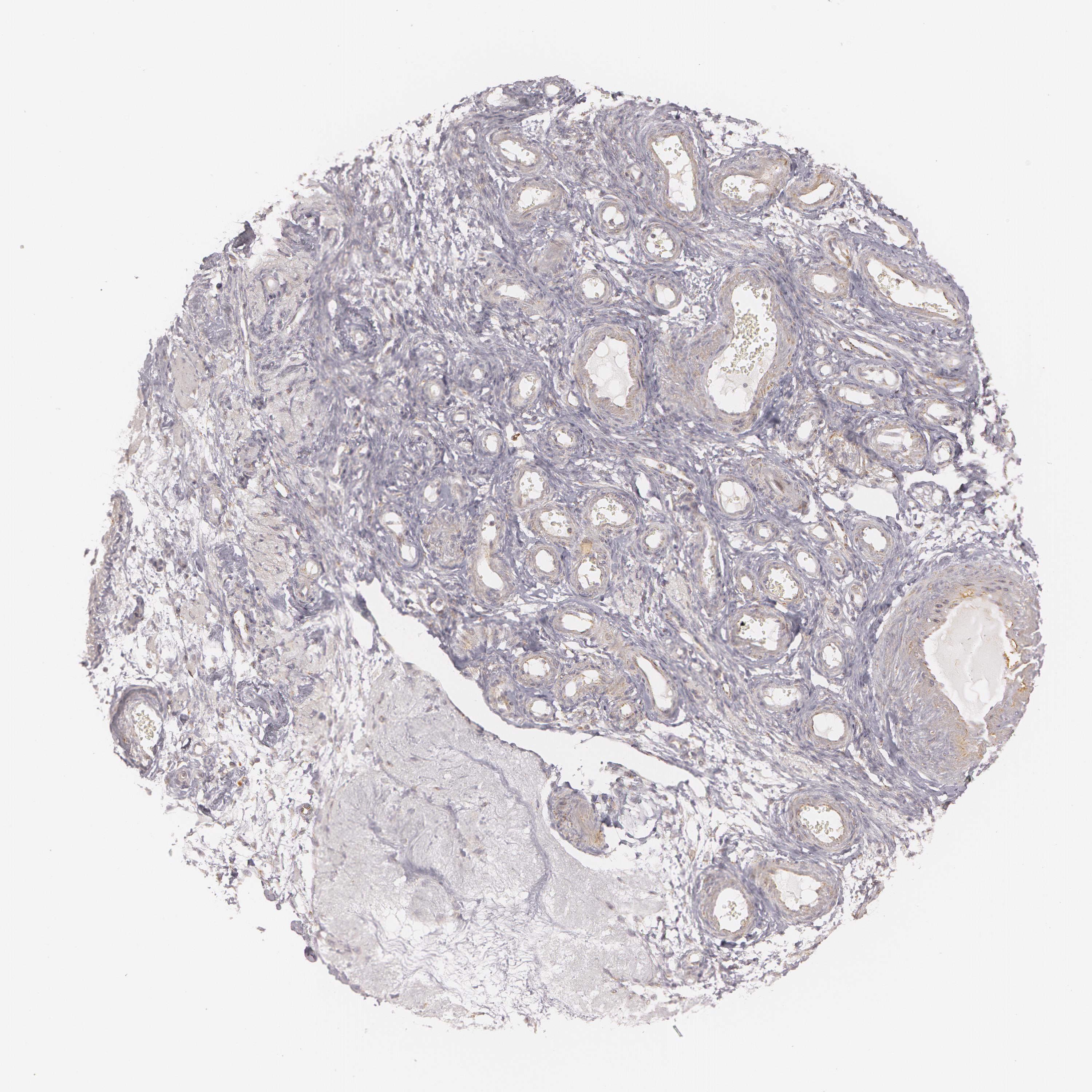 Antibody staining in the annotated cell types in the current human tissue is reported as not detected, low, medium, or high, based on conventional immunohistochemistry profiling in selected tissues. This score is based on the combination of the staining intensity and fraction of stained cells.