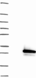 A Western blot analysis is performed on a panel of human tissues and cell lines to evaluate antibody specificity. For antibodies with unreliable result a revalidation using an over-expression lysate is performed.
