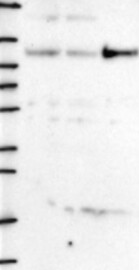 A Western blot analysis is performed on a panel of human tissues and cell lines to evaluate antibody specificity. For antibodies with unreliable result a revalidation using an over-expression lysate is performed.