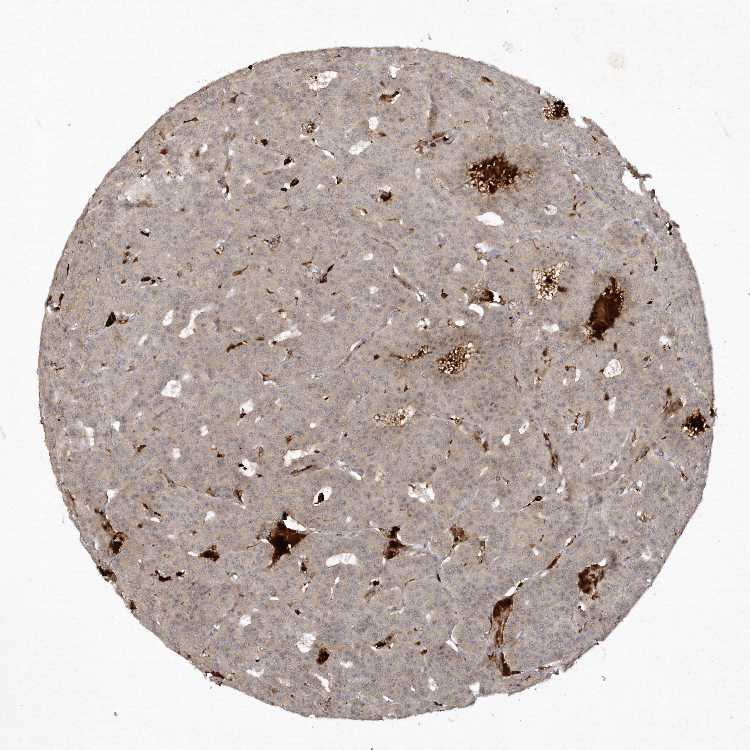 Antibody staining in the annotated cell types in the current human tissue is reported as not detected, low, medium, or high, based on conventional immunohistochemistry profiling in selected tissues. This score is based on the combination of the staining intensity and fraction of stained cells.