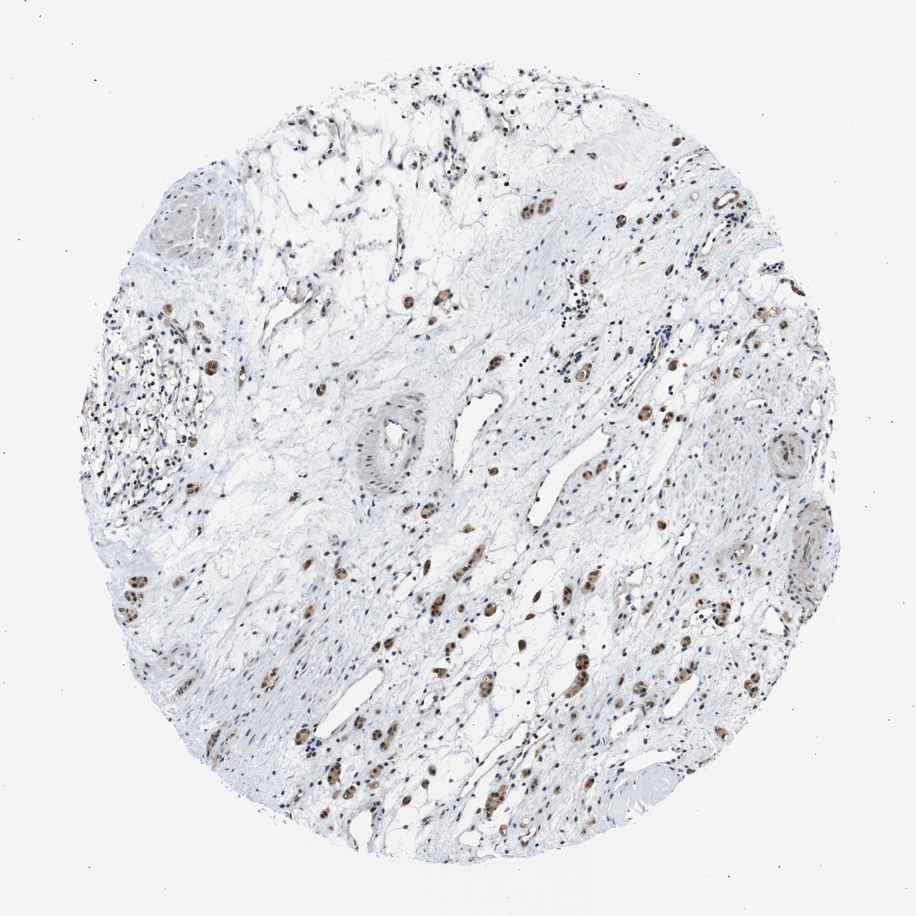 Antibody staining in the annotated cell types in the current human tissue is reported as not detected, low, medium, or high, based on conventional immunohistochemistry profiling in selected tissues. This score is based on the combination of the staining intensity and fraction of stained cells.