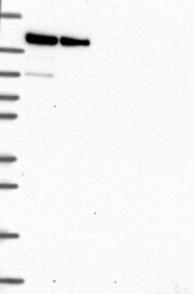A Western blot analysis is performed on a panel of human tissues and cell lines to evaluate antibody specificity. For antibodies with unreliable result a revalidation using an over-expression lysate is performed.