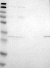 A Western blot analysis is performed on a panel of human tissues and cell lines to evaluate antibody specificity. For antibodies with unreliable result a revalidation using an over-expression lysate is performed.