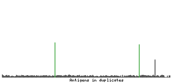 At the top of the view, the position of the antigen (identified by the corresponding HPA identifier) is shown as a green bar. A yellow triangle on the bar indicates a <100% sequence identity to the protein target.