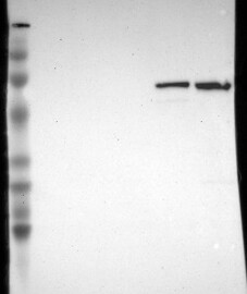 This method is based on over-expression of the target protein in a cell line preferably not expressing the target protein. The staining of the antibody is evaluated by Western blot through analyses of samples from cell lysates with and without recombinant expression of the target protein. The results show no or weak band from the unmodified cell line lysate and a strong band in the cell line with recombinant expression.