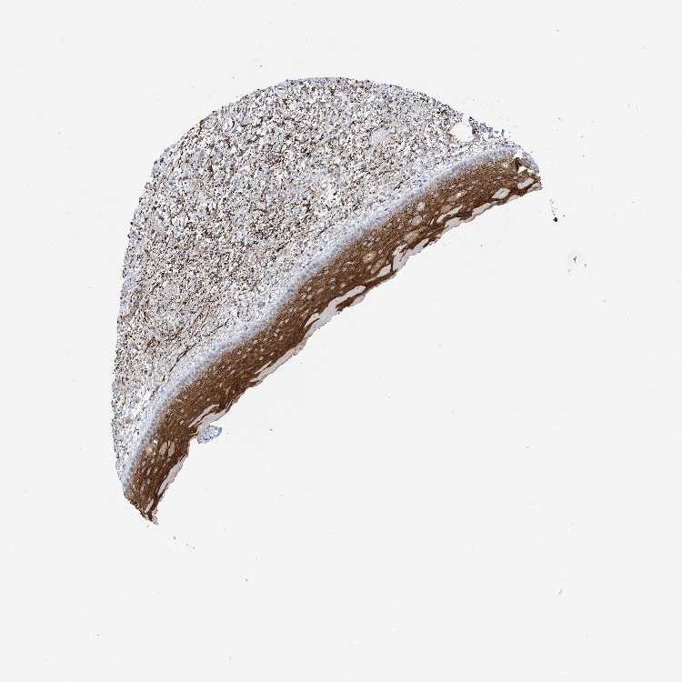 Antibody staining in the annotated cell types in the current human tissue is reported as not detected, low, medium, or high, based on conventional immunohistochemistry profiling in selected tissues. This score is based on the combination of the staining intensity and fraction of stained cells.