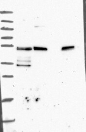 A Western blot analysis is performed on a panel of human tissues and cell lines to evaluate antibody specificity. For antibodies with unreliable result a revalidation using an over-expression lysate is performed.