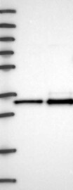 A Western blot analysis is performed on a panel of human tissues and cell lines to evaluate antibody specificity. For antibodies with unreliable result a revalidation using an over-expression lysate is performed.