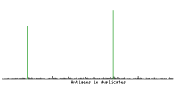At the top of the view, the position of the antigen (identified by the corresponding HPA identifier) is shown as a green bar. A yellow triangle on the bar indicates a <100% sequence identity to the protein target.
