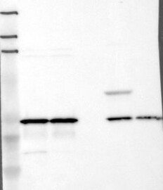 A Western blot analysis is performed on a panel of human tissues and cell lines to evaluate antibody specificity. For antibodies with unreliable result a revalidation using an over-expression lysate is performed.