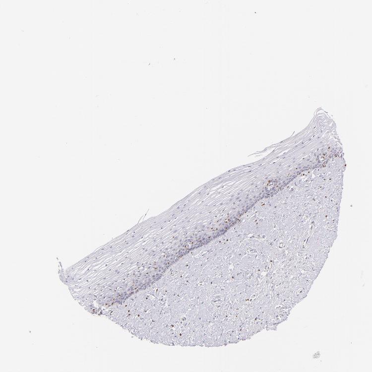 Antibody staining in the annotated cell types in the current human tissue is reported as not detected, low, medium, or high, based on conventional immunohistochemistry profiling in selected tissues. This score is based on the combination of the staining intensity and fraction of stained cells.