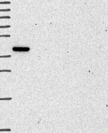 A Western blot analysis is performed on a panel of human tissues and cell lines to evaluate antibody specificity. For antibodies with unreliable result a revalidation using an over-expression lysate is performed.