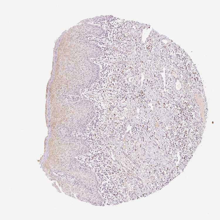 Antibody staining in the annotated cell types in the current human tissue is reported as not detected, low, medium, or high, based on conventional immunohistochemistry profiling in selected tissues. This score is based on the combination of the staining intensity and fraction of stained cells.