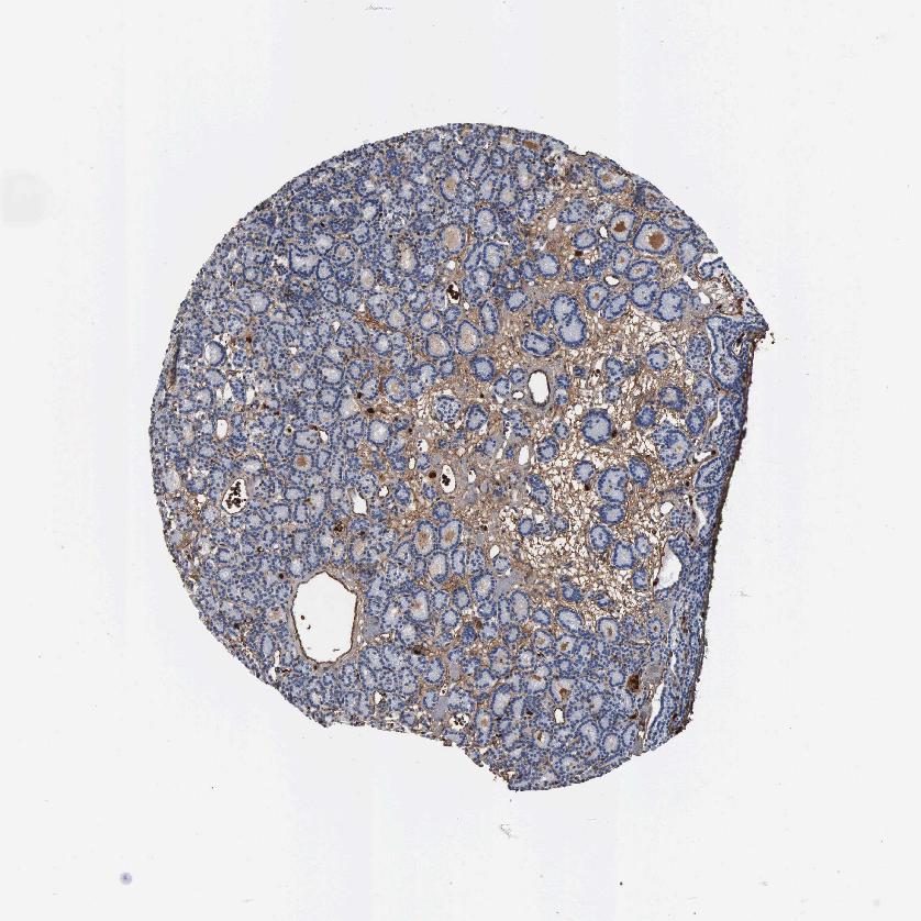 Antibody staining in the annotated cell types in the current human tissue is reported as not detected, low, medium, or high, based on conventional immunohistochemistry profiling in selected tissues. This score is based on the combination of the staining intensity and fraction of stained cells.