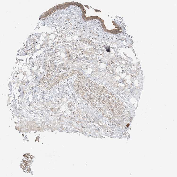Antibody staining in the annotated cell types in the current human tissue is reported as not detected, low, medium, or high, based on conventional immunohistochemistry profiling in selected tissues. This score is based on the combination of the staining intensity and fraction of stained cells.