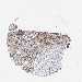 Antibody staining in the annotated cell types in the current human tissue is reported as not detected, low, medium, or high, based on conventional immunohistochemistry profiling in selected tissues. This score is based on the combination of the staining intensity and fraction of stained cells.