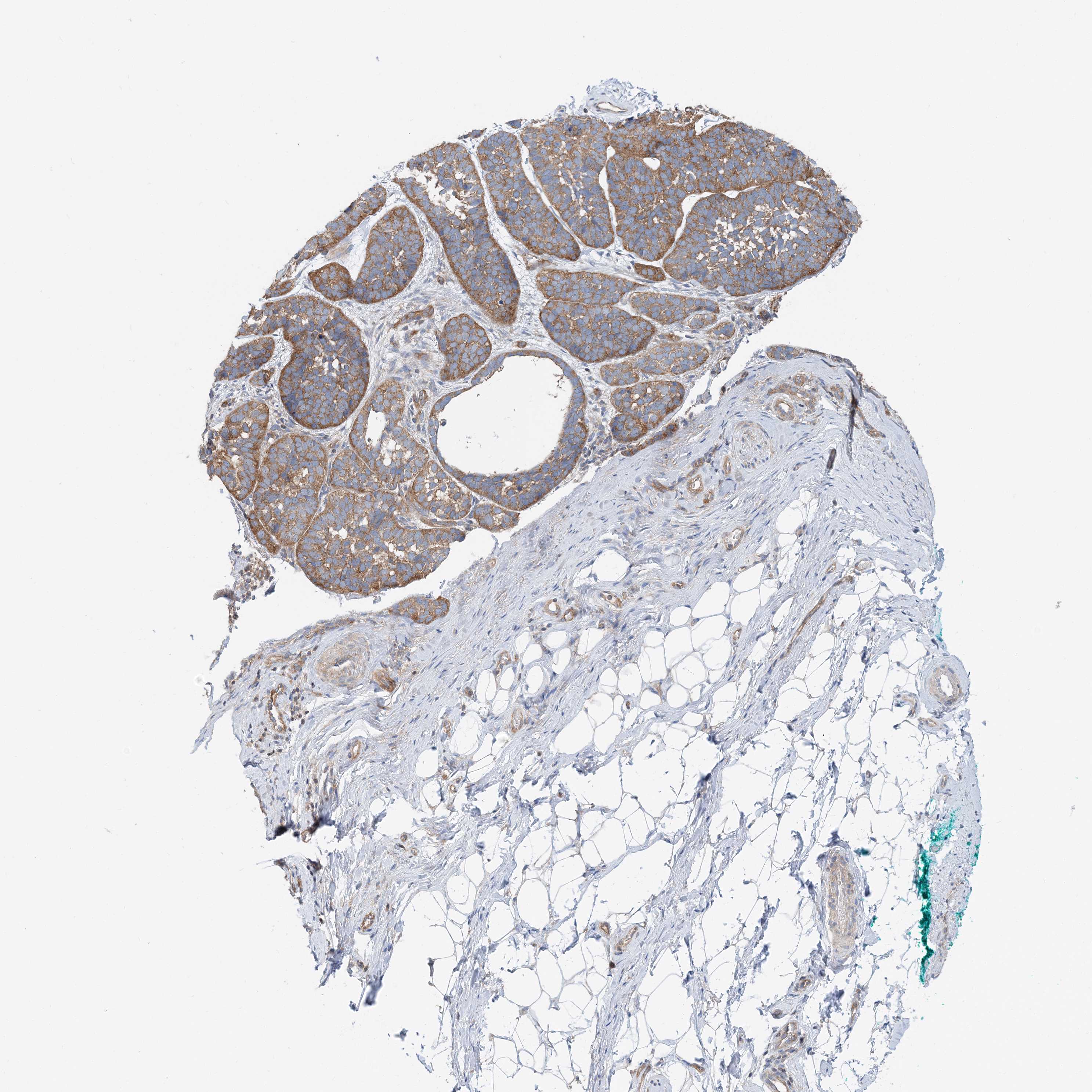 Antibody staining in the annotated cell types in the current human tissue is reported as not detected, low, medium, or high, based on conventional immunohistochemistry profiling in selected tissues. This score is based on the combination of the staining intensity and fraction of stained cells.