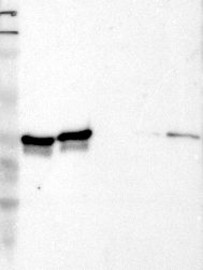 A Western blot analysis is performed on a panel of human tissues and cell lines to evaluate antibody specificity. For antibodies with unreliable result a revalidation using an over-expression lysate is performed.