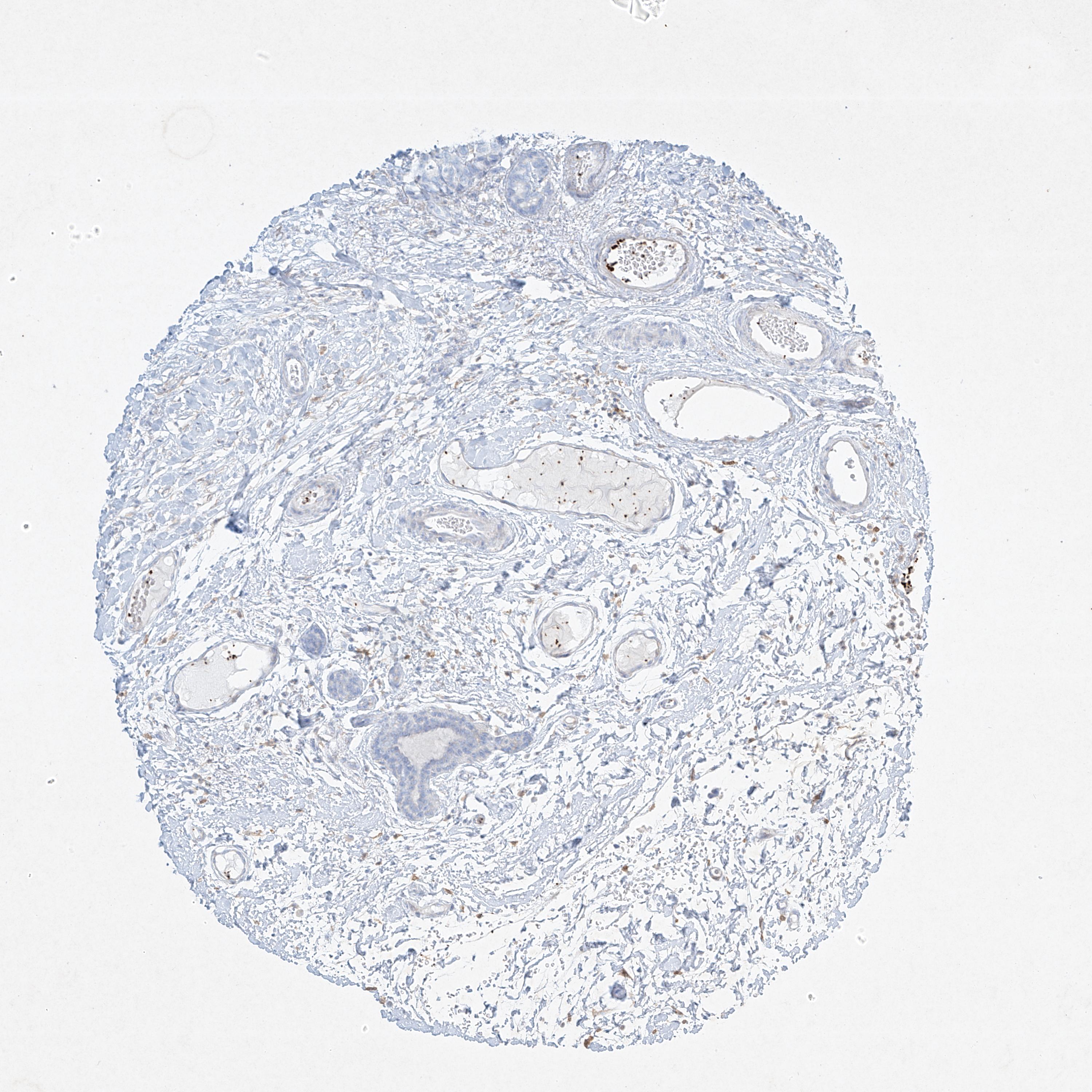 Antibody staining in the annotated cell types in the current human tissue is reported as not detected, low, medium, or high, based on conventional immunohistochemistry profiling in selected tissues. This score is based on the combination of the staining intensity and fraction of stained cells.