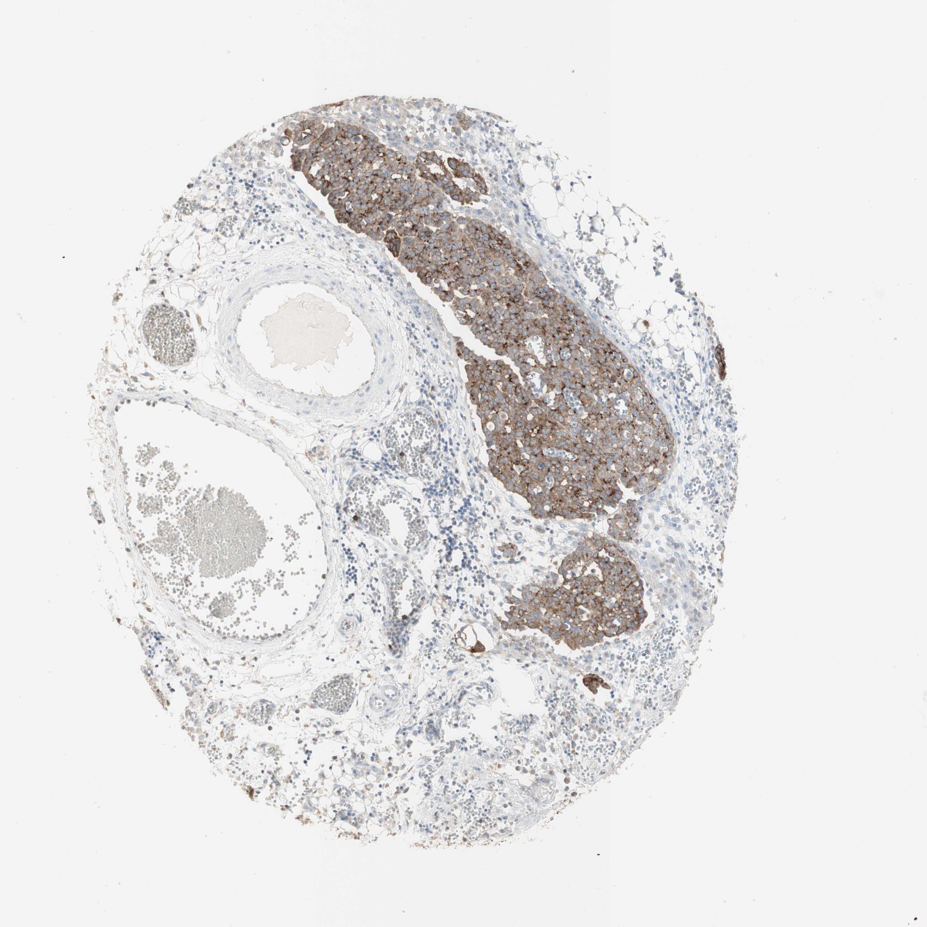 Antibody staining in the annotated cell types in the current human tissue is reported as not detected, low, medium, or high, based on conventional immunohistochemistry profiling in selected tissues. This score is based on the combination of the staining intensity and fraction of stained cells.