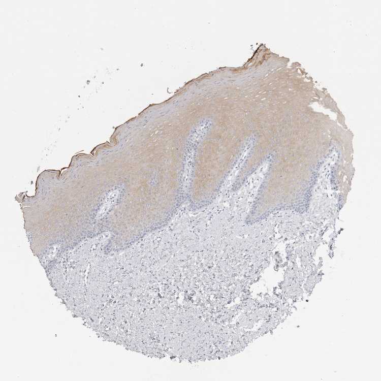 Antibody staining in the annotated cell types in the current human tissue is reported as not detected, low, medium, or high, based on conventional immunohistochemistry profiling in selected tissues. This score is based on the combination of the staining intensity and fraction of stained cells.