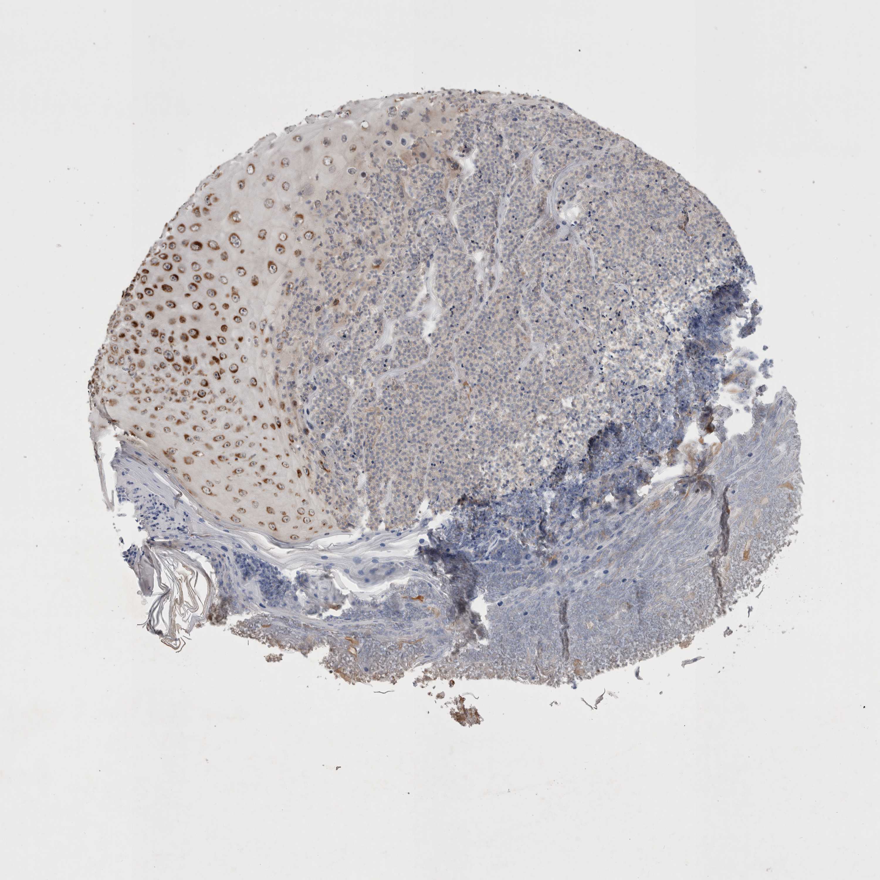 Antibody staining in the annotated cell types in the current human tissue is reported as not detected, low, medium, or high, based on conventional immunohistochemistry profiling in selected tissues. This score is based on the combination of the staining intensity and fraction of stained cells.