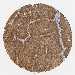 Antibody staining in the annotated cell types in the current human tissue is reported as not detected, low, medium, or high, based on conventional immunohistochemistry profiling in selected tissues. This score is based on the combination of the staining intensity and fraction of stained cells.