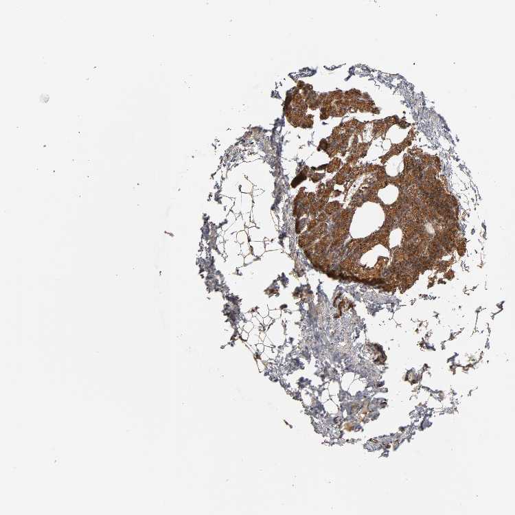 Antibody staining in the annotated cell types in the current human tissue is reported as not detected, low, medium, or high, based on conventional immunohistochemistry profiling in selected tissues. This score is based on the combination of the staining intensity and fraction of stained cells.