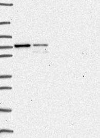 A Western blot analysis is performed on a panel of human tissues and cell lines to evaluate antibody specificity. For antibodies with unreliable result a revalidation using an over-expression lysate is performed.
