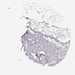 Antibody staining in the annotated cell types in the current human tissue is reported as not detected, low, medium, or high, based on conventional immunohistochemistry profiling in selected tissues. This score is based on the combination of the staining intensity and fraction of stained cells.