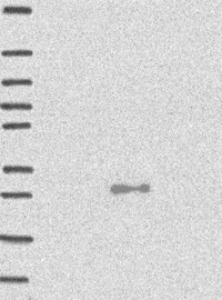 A Western blot analysis is performed on a panel of human tissues and cell lines to evaluate antibody specificity. For antibodies with unreliable result a revalidation using an over-expression lysate is performed.