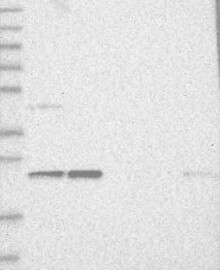 A Western blot analysis is performed on a panel of human tissues and cell lines to evaluate antibody specificity. For antibodies with unreliable result a revalidation using an over-expression lysate is performed.
